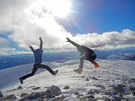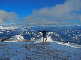 Und weil es tatsächlich bald unangenehm kalt wird, müssen wir auch auf diesem Gipfel wieder zu einigen Sprüngen ansetzen!