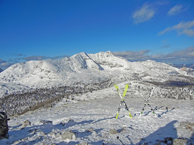 Wir erreichen schließlich die Hochfläche unterhalb des benachbarten Nazogl und stehen vor dem wenig steilen Gipfelaufschwung. In der guten Spur kommen wir exzellent voran und auch die ersten Abfahrer sprechen von traumhaften Verhältnissen.