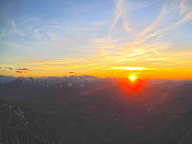 | ....und verschwindet bald hellstrahlend hinter den Bergketten.... |