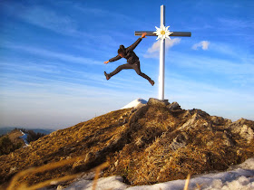 Am Almkogel angekommen, habe ich noch über eine Stunde Zeit, bis sich die Sonne verabschiedet und überlege kurz noch zum Wieser weiterzugehen, entscheide mich aber für die gemütlichere Variante- Stimmungen genießen, und blöd herumhüpfen.