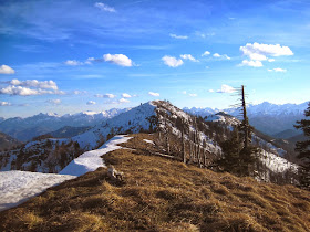 Den einsamen Steig auf den Burgspitz, der nur wenige Meter nach der Haltestelle beginnt, wählte ich als Zustieg für einen prachtvollen Sonnenuntergang Angesicht in Angesicht mit den Riesen der Haller Mauern. Sanfte Steigspuren und wenige Markierungen- Orientierungsfähigkeit ist gefragt. Hinein ins Fäulenbachtal und hinauf zum Ödboden geht es immer schön steil dahin und man gewinnt schnell an Höhe. Der Frühling hat den Winter hier schon vollends aufs Abstellgleis gestellt...(naja, nächstes Jahr wieder).