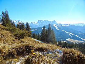 | Der Frühling präsentiert sich- im Hintergrund der Gosaukamm |