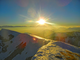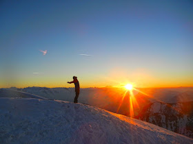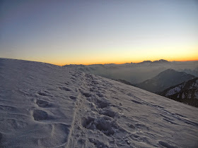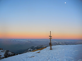 Um etwa 18.10 Uhr hat sich die Sonne endgültig für den heutigen Tag verabschiedet. Wir bleiben dennoch noch am Gipfel und genießen die einzigarte Stimmung und die verschiedenen Farben, mit die sich die Berge im letzten Licht schmücken.