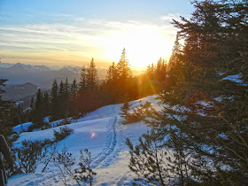 Mittlerweile ist es etwa 18.20 Uhr und wir müssen uns noch gedulden bis die Sonne "A bientot" sagt. Wir genießen die großartigen Stimmungen und bemerken dabei schon, wie sich die Beinbehaarung gegen die aufkommende Kälte stellt.