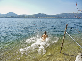 Am See angekommen, glitzert dieser auch weiterhin verführerisch in der Sonne und so beschließen wir die heurige Badesaison mit einem Sprung in den Traunsee zu eröffnen um die müden Beine wieder fit zu machen.