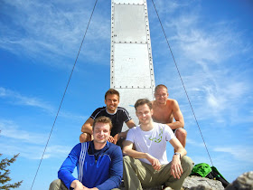 Am Gipfel treffen wir schließlich einen alten Klassenkameraden, den ich zuletzt vor einem guten Jahr getroffen habe - damals am Erlakogel. Man würde meinen, man läuft sich einmal in der Linzer Dorfmetropole über den Weg, aber auf den Bergen kumman d'Leit zam!