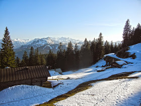 "Mama, warum ist der Bub nackig?" lassen wir auch die Familien am Seeufer wieder in Frieden und verlegen die Erregung öffentlichen Ärgernisses nach Bad Ischl. Frisch gebadet und abgekühlt steuern wir die Rettenbachalm an, den Ausgangspunkt für unseren zweiten Streich. Der Gamskogel, beiden noch kein praktischer Begriff, ist ein bewaldeter Aussichtsberg im Schatten des Schönbergs. Schön südseitig gelegen, verspricht er Ende März einen angenehmen und schneearmen Anstieg und nach einer kurzen Bachquerung geht es auch schon los.
