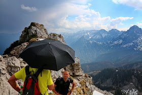 Die großartigen Blicke zum gegenüberliegenden Warscheneck lassen uns gleicheinmal schaudern und Matthias und Ich erleben eine Art "Flashback". Was gestern am Pyhrgas in sintflutartigen Regenfällen und dem Wunsch nach einer zweiten Arche gipfelte, blieb heut aber aus. Die dunklen Wolken verschonten uns, und nach dem Gewitter, das Martin nur veranlasste seinen transportablen Regenschirm wieder auszufahren, erlebten wir die verschiedensten und wunderbarsten Stimmungen.