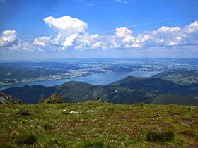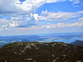 | Rückblick: Bischofsmütze , dahinter der Attersee |