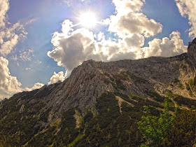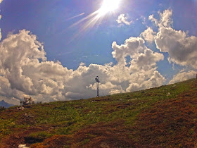 Ein kurzes "Na, da geh i ned rauf" abgeschmettert, haben wir auch die letzte, etwas ausgesetztere Stelle, hinter uns gebracht und können uns mit der Sonne gemeinsam über die letzten Meter im einfachen Gehgelände freuen. Die Wolken, die sich heute nicht entscheiden können ob sie uns Sonnenlicht oder Abkühlung schenken wollen, haben sich nun ganz verzogen und Siegrid für ihr Durchhaltevermögen belohnt.