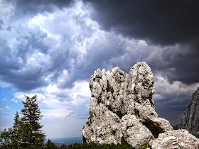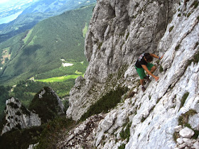 Feiertag und schönes Wetter- ideale Vorraussetzungen für einen weiteren Tag in den heimischen Bergen! Die Wahl fiel wiedereinmal auf einen Höllengebirgs-Klassiker: Der Brunnkogel sollte über den Franz-Scheckenberger Steig (II-) erklommen werden! Ansich ja nichts Außergewöhnliches, wäre da nicht der spezielle Tourenpartner, der mich heute nach langer Abstinenz wieder in eine der schönsten Ecken Oberösterreichs begleitet. Neben der Mutter Natur ist heute nämlich heute auch meine eigene Mutter bereit sich von ihrer besten Seite zu zeigen und kutschiert uns nach längeren Anlaufproblemen (Ein ausgiebiges vitales Frühstück muss schon noch drin sein, für eine Frau mittleren Alters) zur Taferlklause. Betrachtet man aber bereits die ersten Meter so muss man das erwähnte mittlere Alter um einige Jahre herabsenken. Voller Elan schmeißt sich "Sigi" in ihr erstes Bergabenteuer nach zwei Jahren trockener Talluft. Schon nach wenigen Metern verlassen wir den markierten Wanderweg und visieren den Scheckenberger-Steig an. Der "Schecki" ist eine lohnende Alternative zu dem ausgelutschten und stark frequentierten Weg durchs vordere Aurachkar. Der unmarkierte Steig weist einige leichte Kletterstellen auf (I-II) und ich bin gespannt, wie meine Lebensspenderin das Felsgelände mental "verkraftet".