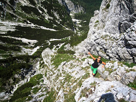 Die Durchschreitung des hinteren Aurachkars, für unsereins keine nennenswerte Schwierigkeit mehr, kann für den Laien durchaus eine Herausforderung darstellen, doch meine Mutter hantelt sich wie ein junges Äffchen nach oben und beweist einmal mehr Berggams-Qualitäten.