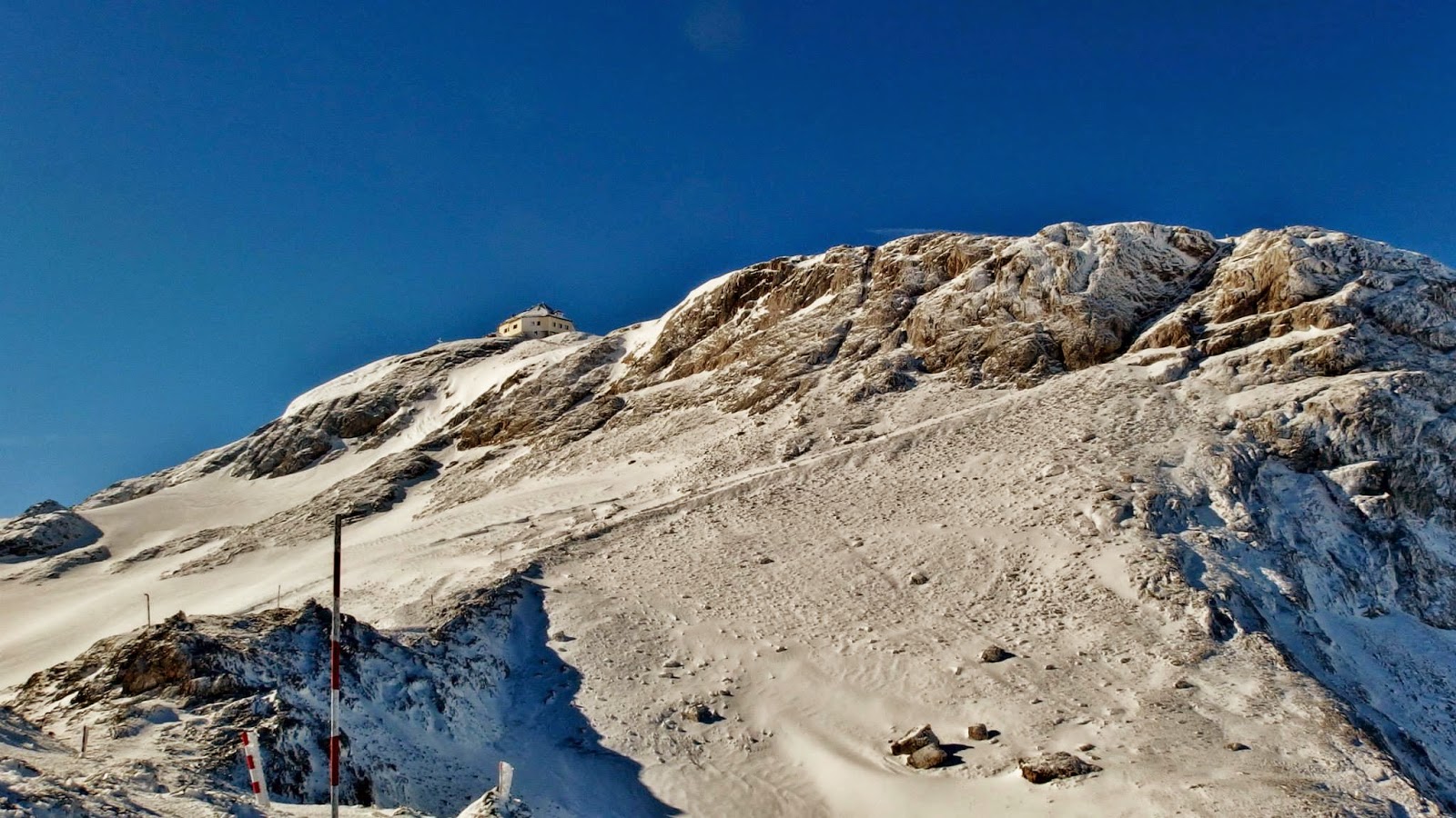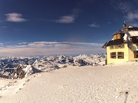 Unsere Intention war es den Hochkönig, nach dem Wintereinbruch, ohne Hilfsmittel (Schneeschuhe, Ski, Helikopter) und aus eigener Kraft (Füße, Hände, Knie und Hüfte) zu besteigen und Roman auf dem Matrashaus den letzten Besuch vor der endgültigen Schließung abzustatten. Vielleicht eine etwas eigenartige Idee und mit Sicherheit ein Haufen "Arbeit" aber eine durchaus lohnende Unternehmung bei diesen Verhältnissen. Zudem sind die einzigen beiden Gruppen, die mit Skiern unterwegs waren, auf etwa 2450m umgedreht, weil es durch die Verwehungen zu wenig Auflage gab.