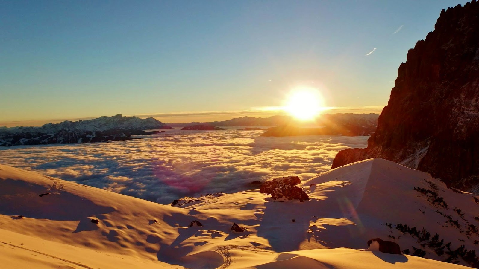 Lange getrödelt und Hüttenbücher aus der Vorkriegszeit durchstöbert, steigen wir um 06.30 Uhr in unseren Spuren wieder Richtung Hochkönig bergan. Die Sonne lässt noch eine Stunde auf sich warten. Aber so ist das eben mit Prominenten. Lange warten lassen und dann ein sagenhafter Auftritt. Nur die Gämse am Gipfel der Torsäule pfeifen bereits fröhlich in den jungfräulichen Sonnenstrahlen.