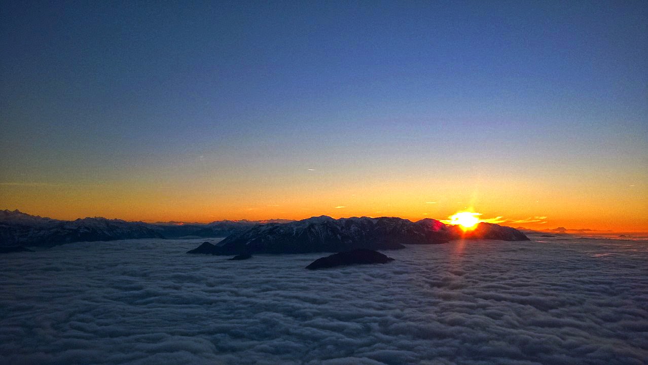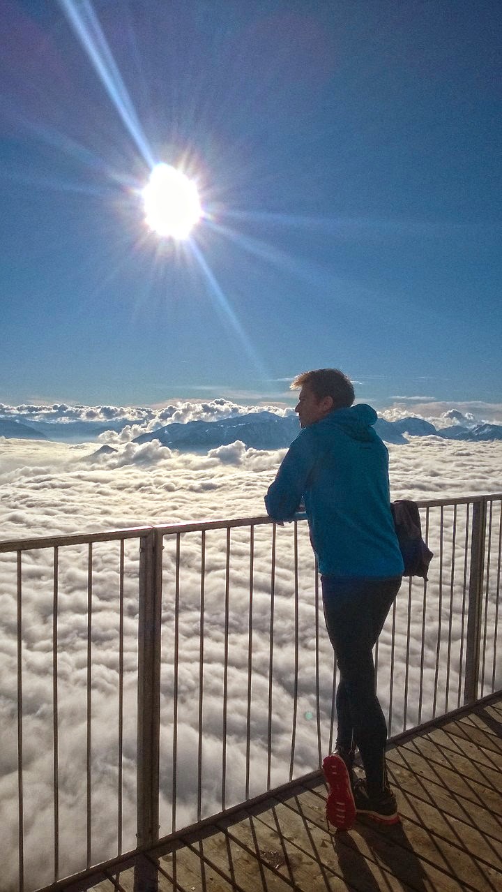 Die Sonne taucht das Meer unter uns in warmes Licht und ein bisschen kommt das Gefühl von Urlaub auf. Urlaub von all den Sorgen und Zwängen, die sich unter dieser dicken Nebelschicht verborgen halten. Wir genießen also unseren "Magic Life All-Inclusive" und spurten dann über den wohlbekannten Naturfreundesteig wieder zurück ins Tal.