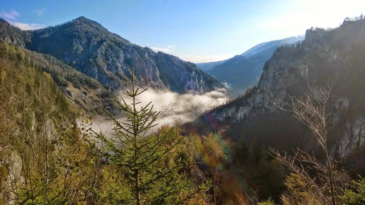 Dass es sich der Winter in den heimischen Gefilden gemütlich gemacht hat, wissen wir spätestens seit unserer etwas merkwürdig anmutenden Hochkönig-Besteigung. Weil Hans diesen Umstand aber auch am eigenen Leib verspüren sollte, musste heute ein oberösterreichischer Klassiker für die Veranschaulichung der neuen Verhältnisse herhalten. Wir starten unsere Tour, bei prognostiziertem Kaiserwetter, beim Parkplatz Polsterlucke und bringen den Forststraßenzustieg möglichst schnell hinter uns. Nebelschwaden lassen die Riesen des Toten Gebirges noch in mystischer Art glänzen und funkeln, als wir uns endlich Richtung Prielschutzhaus bewegen. Das Tote Gebirge, ich würde es schon fast zu einem österreichischen Kulturgut zählen, lässt seine Besucher immer wieder verblüfft inne halten. Wenn man so will, ist dieses riesige Karstgebiet der Zombie unter den Bergketten. Offensichtlich tot, präsentiert es dem genauen Betrachter seine zauberhafte Lebendigkeit.