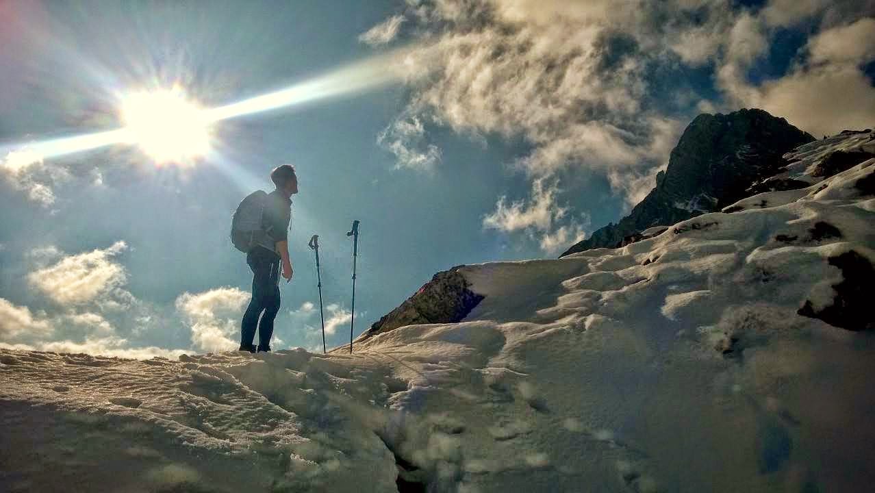 Wir freuen uns dennoch über das Erreichen des knallroten Kreuzes und stoßen auf den heutigen Tag an. Es muss nicht immer ein blauer Himmel sein. Es müssen auch nicht immer perfekte Sichtbedingungen herrschen. Auch der Weg muss nicht immer perfekt zu begehen sein. Es sind die Momente, der Augenblick und vor allem manchmal auch die Überwindung, die eine Bergtour vollkommen machen.
