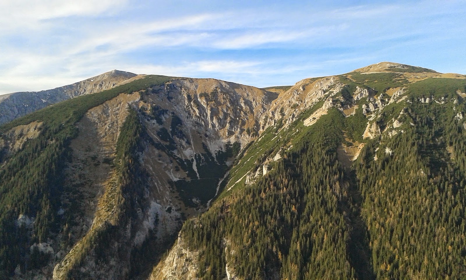 Weil sich das schöne, ruhige Herbstwetter auch am heutigen Beginn einer neuen Novemberwoche fortsetzen sollte, musste nocheinmal ein kleiner "Auslauf" her. Weil ich mein alpines Gepäck bereits wieder nach Wien verfrachtet hatte, galt es einen Berg zu finden, der auch mit den öffentlichen Verkehrsmitteln gut und relativ schnell zu erreichen war. Weil ich meinen Lauf erst knapp vor Mittag starten konnte, fiel die Wahl auf den Krummbachstein- einen 1.602m hohen Ausläufer des Schneebergs.
