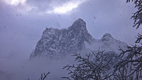 | Der frisch angezuckerte Hochkesselkopf ragt aus dem Nebel |