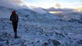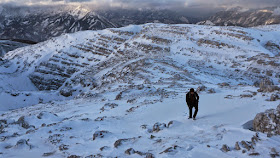 Die Temperaturen sinken in den Keller und bei -11 Grad erreichen wir den letzten Aufschwung. Wie gewöhnlich ist der Gipfelbereich völlig abgeblasen und ohne Schwierigkeiten stehen wir ganz kurz vor Sonnenuntergang am höchsten Punkt.
