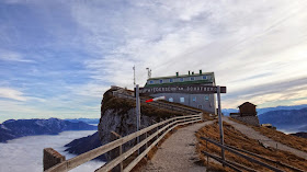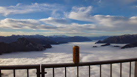 Wir starten unsere erste Tour also vom Gasthaus Kleefeld bei St. Wolfgang und versuchen so schnell wie möglich den Gipfel des Sparbers zu erreichen. Während wir im Eiltempo nach oben sausen, lässt sich auch die Sonne erstmals an diesem frischen Tage blicken und sorgt gleich für wohlig warme Temperaturen. Nach 53 Minuten können wir am 1.502m hohen Aussichtsgipfel nicht nur eine kurze Rast genießen sondern auch zu unserem nächsten Ziel hinüberlugen. Der gegenüberliegende Schafberg präsentiert sich mit seinem Hotel am Haupte und wir dürfen uns auf die zweite Nebelflucht des Tages freuen.