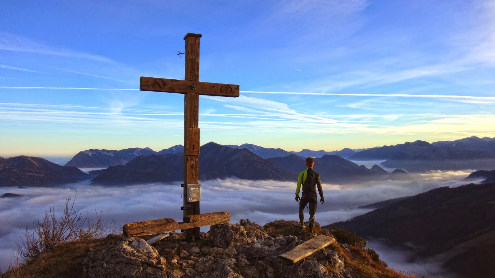 Sonnenaufgang am Traunstein-Gipfel, meine bislang 39. Besteigung