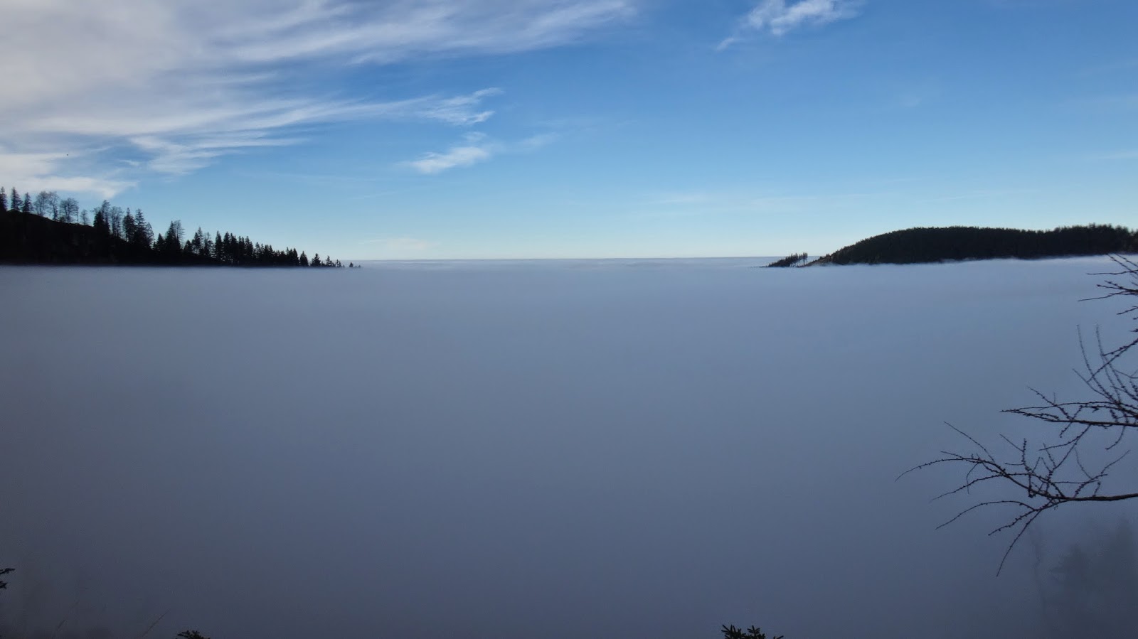 Kein Bildfehler: Ab etwa 1.100 Metern steigen wir aus dem Nebel