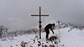 Von der Mayralm geht es zuerst in Langlaufmanier dem nächsten Waldhang entgegen, der zuerst mäßig steil Richtung Gipfel führt. Die Landschaft ist trotz der schlechten Sichtbedingungen eine Wohltat für die Seele und so meistern wir auch die letzten steilen Spitzkehren aufs Plateau.