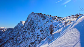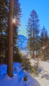 Auf die Frage ob es denn gut gehe, antwortet Thomas salopp: "Freilich, man braucht ja nicht immer das teuerste Zeug". Auch diese resche Antwort hat einen Hintergrund. Seine Skitourenausrüstung kommt nämlich nicht aus den teuren Hallen von Salomon, Movement oder Dynafit sondern von einem liebenswürdigen Verkäufer am Linzer Flohmarkt. Alleine deswegen hat Thomas schon Kultstatus am heutigen Tage. Mäßig steil zieht sich der Weg durch den Wald, bevor er kurz aufsteilt und wir die Iglmoosalm auf 1.206 Metern erreichen. Von hier aus hat man bereits wunderbare Blicke zum Dachstein und dem Gosaukamm und wir entledigen uns den letzten Kleidungsresten. You can leave your hat on.