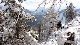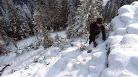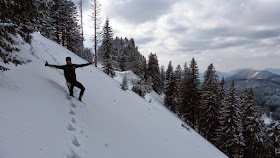 Schließlich sind auch diese Passagen schnell überbrückt und wir stehen auf dem Alpstein in 1.443 Metern Seehöhe. Für die letzten Stunden des Tages leiht uns Petrus schließlich auch die Sonne, bevor er sie für die kommende Woche wieder in seinen metallenen Safe schließt und die Erde bewässert. Ein eisiger Wind treibt uns aber schnell wieder vom Gipfel und wir queren im meterhohen Schnee in der Nordseite um wieder den Abstiegsweg zum Jagahäusl zu erreichen. "Kruzifix nuamoi"- Mit Sicherheit unter den Top Drei, der von Hans getätigten Aussagen in den Bergen ;)