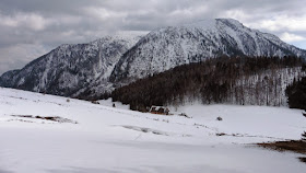 | Kurz vor der Schaumbergalm erreichen wir den Schnee |