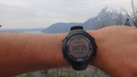 Suunto Ambit3 Peak nach 32 Minuten betätigen. Außer einem Hund, der meinen penetranten Geruch scheinbar nicht leiden kann und dies mit einem bellenden Wutanfall zum Ausruck bringt, sind noch sein Frauchen und deren Freundin am 1.037 Meter hohen Aussichtsberg präsent. Beinahe ein verlassenes Bild, hoch über den Dächern der Faschingsmetropole.