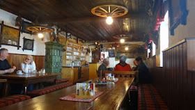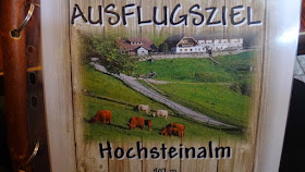 Nun kann man sich an die roten Punkte halten, die auf den Bäumen aufgemalt wurden und man erreicht die immer gut besuchte Hochsteinalm (907m), die im Winter mit Schlitten und im Sommer mit einem eigenen Streichelzoo begeistern kann. Ich lasse mich aber von Kaffee und Kuchen begeistern (Nein, nicht die Kletterroute in der Traunstein-Westwand, obwohl die durchaus auch für begeisternde Blicke sorgt) und raste bei lauten Gesprächen über das zukünftige Rauchergesetz, das der "Tschickbude" Österreich nun auch endlich mal auf den nikotinhaltigen Schlips tritt.