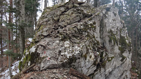 Trotz guter Beschilderung sind hier kaum Leute anzutreffen, was auch ein Blick in die Gipfelbücher bestätigt. Mit roten Punkten markiert geht es sehr steil einen Waldschlag hinauf, den der Sturm der vergangenen Tage neu dekoriert hat. Am Sattel angekommen, wende ich mich nach links und laufe zum Aussichtsfelsen des Baalsteins. Die angegebenen 872 Meter werden im Gipfelbuch auf 807 Meter korrigiert. Da wollt man sich doch glatt besser machen, als man ist. Ich raste kurz und genieße den Blick nach Gmunden und zum omipräsenten Wächter.