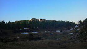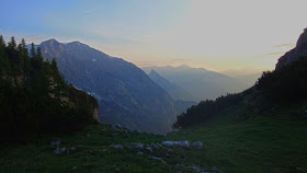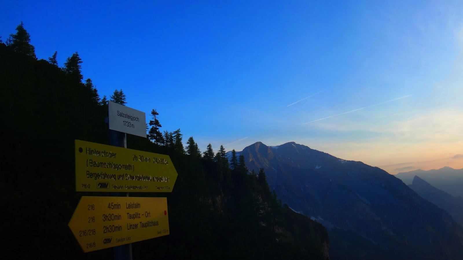 Konsequent steuern wir den Alpengasthof Baumschlagerreith im Talschluss von Hinterstoder an, dessen Parkplatz wir uns heute zum eigenen 4-Sterne-Hotel umfunktionieren. Oder besser: 40.000-Sterne-Hotel. Wir verbringen die Nacht im Schlafsack neben dem Auto und werden von der Milchstraße und anderen galaktischen Autobahnen beobachtet. Alle Ampel scheinen auf Grün gestellt zu sein. Blitze zischen weit entfernt über den Horizont.Nach wenigen Stunden Schlaf, brechen wir mit den ersten Anzeichen von Dämmerung auf,um uns Richtung Salzsteig warm zu laufen. Die schöne Gestalt des Hochplanbergs beobachtet unsere müden Schritte.