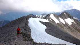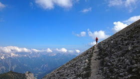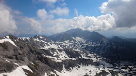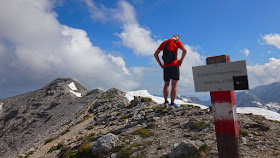 Über einen kurzen Grat (Steinmännern folgen!) erreichen wir in sehr einfacher Kletterei (I-II) das 2.241 Meter hohe Kampl. Einer kurzen Pause folgt der weglose Abstieg Richtung Wetterlucke. Wir merken langsam, dass die Füße schon müde werden und queren damit über steile Schneefelder und schöne Platten (I) um uns einen weiteren Anstieg zu ersparen. Somit sind die Zwischenwände erreicht und es folgt der Teil, der beinahe zu Fluchtiraden zwingt. Steile Schotterwege wechseln sich mit kurzen Kletterstellen ab. 250 Höhenmeter, die uns heute wirklich alles abverlangen. Oben angekommen aber wird darüber kein Wort verloren und bevor wir uns unserem Ziel, dem Warscheneck, zuwenden wird auch dessen Allerwertester mit dem klingenden Namen "Rossarsch" besucht, denn von drohenden Unwettern sind wir noch weiter entfernt, als das Salzsteigjoch vom Warscheneck. Weiße Flecken auf der Landkarte gehören sich nicht!