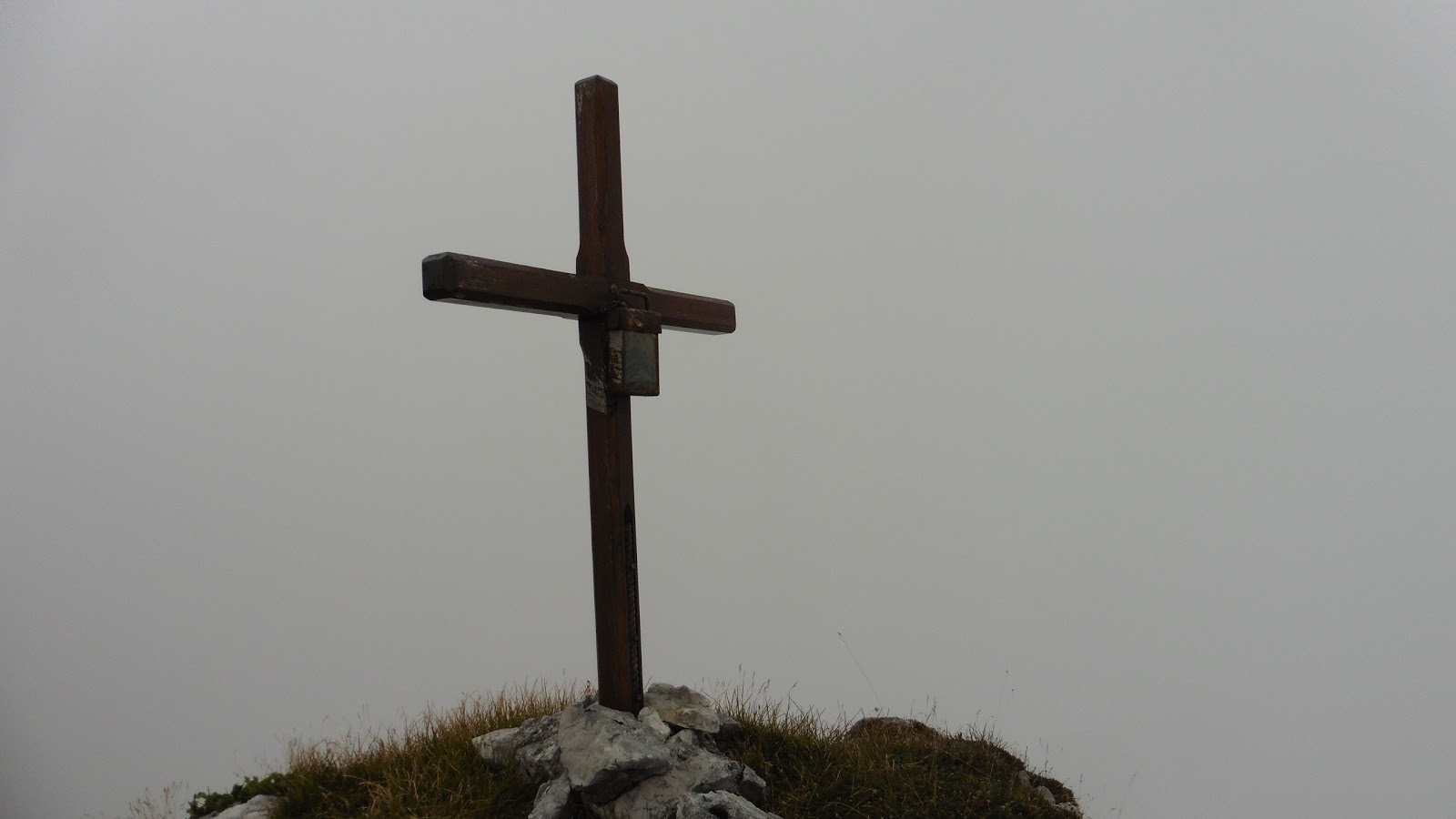 Ein kurzer Latschenkampf und schon ist das kleine Kreuz in greifbarer Nähe. Wir lassen uns nieder und blättern im Gipfelbuch. Seit Februar 2008 ist es hier heroben, hat schon einige Jahre auf dem Umschlag und viele Dinge erlebt. Das zeugt von der Abgeschiedenheit dieses Gipfels. Aber es ist mit vielen Bergen so wie mit den Menschen: die Außenseiter sind meist unverstandene Helden. Genauso einer ist auch der Mitterberg.