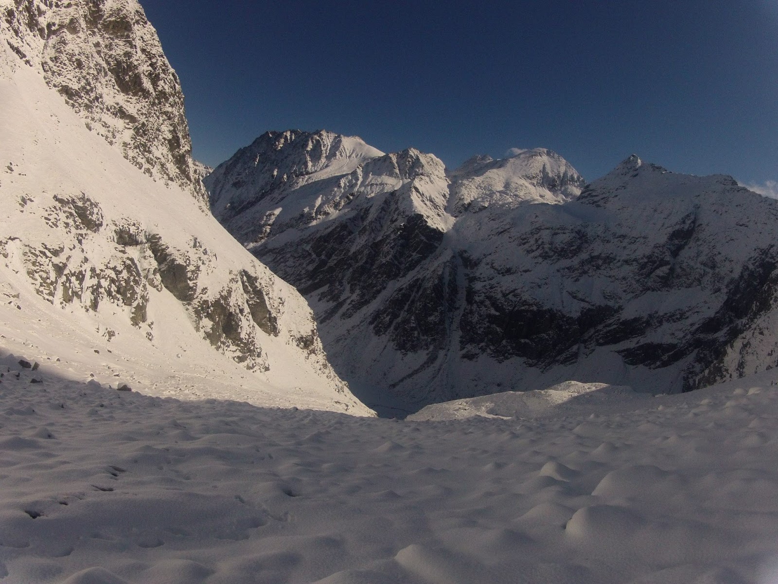 | Die Gollingscharte, eingenommen von Schnee und Eis |